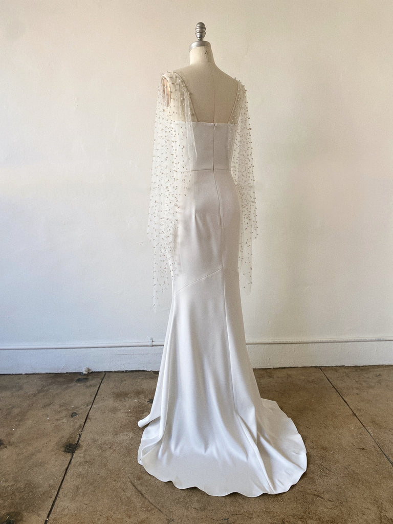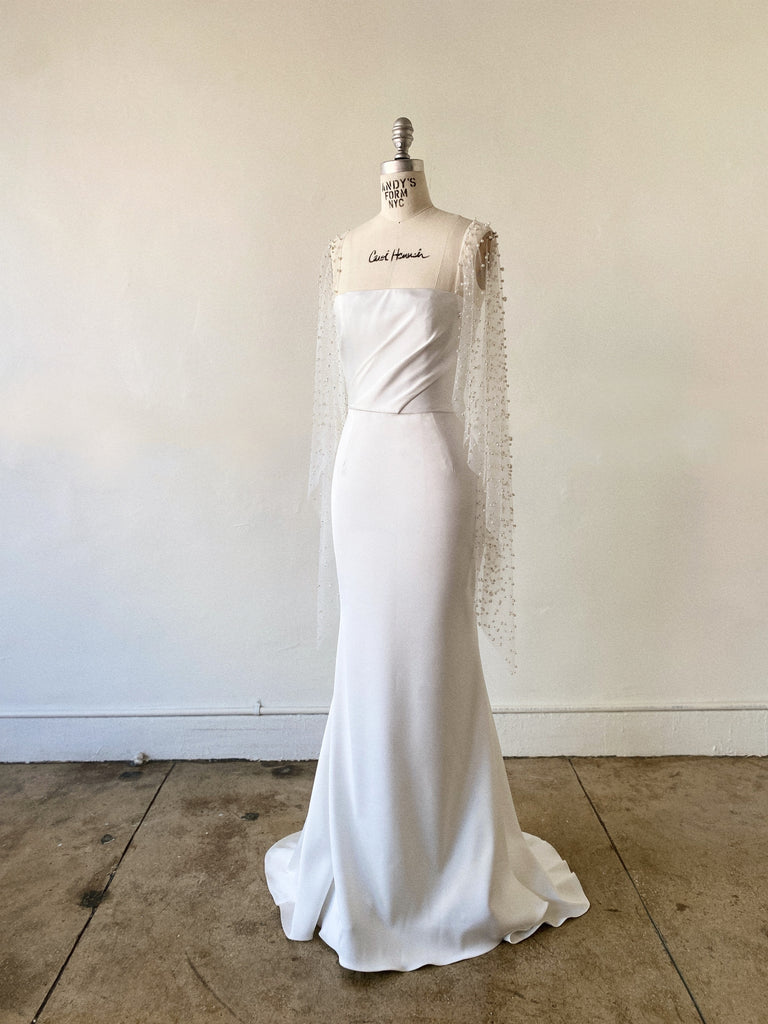 Stretch Satin Crepe from Italy + pearl studded tulle